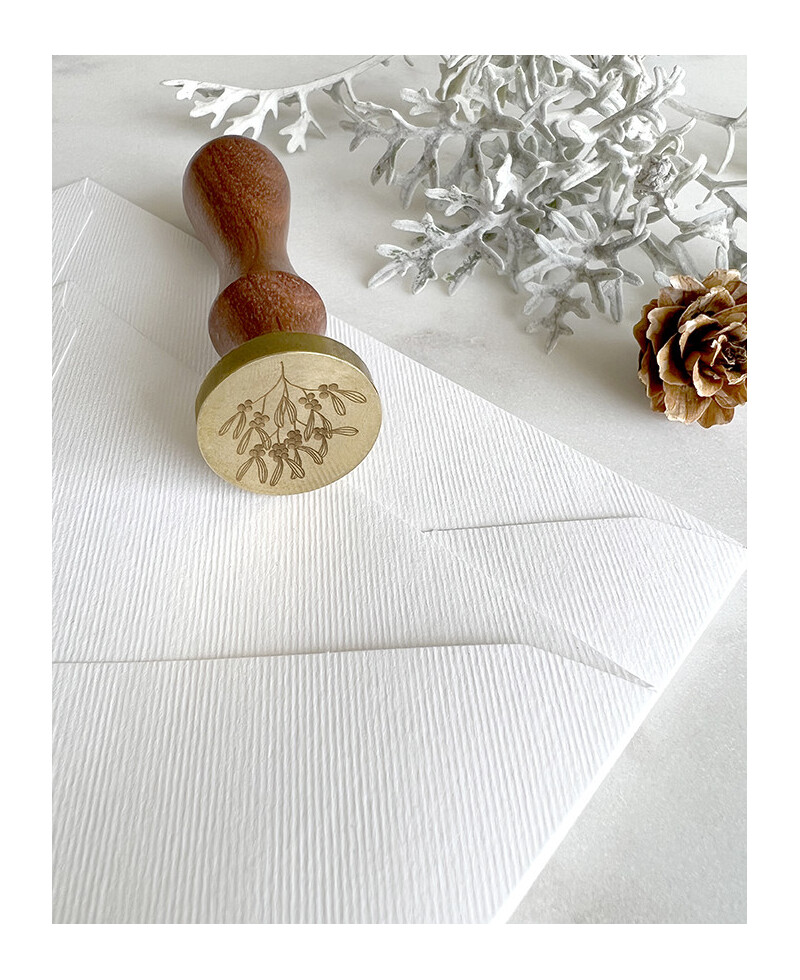 Ein ganz besonderes Wachssiegel, das eine der schönsten Traditionen von Weihnachten, den Kuss unter dem Mistelzweig, einfängt, der von Liebe und Glück erzählt. Es wird angenommen, dass Sie am Heiligabend, wenn Sie die Mistelpflanze hängen lassen und die gewünschte Person küssen, in der Lage sein werden, Liebe zu finden, und wenn Sie sie bereits hatten, werden Sie sie lange behalten. Es ist ein sehr originelles Siegel, mit dem Sie Weihnachtsgeschenke dekorieren, Ihren Weihnachtsgrußkarten, Umschlägen, Briefpapier oder anderen weihnachtlichen Details eine originelle Note verleihen können.