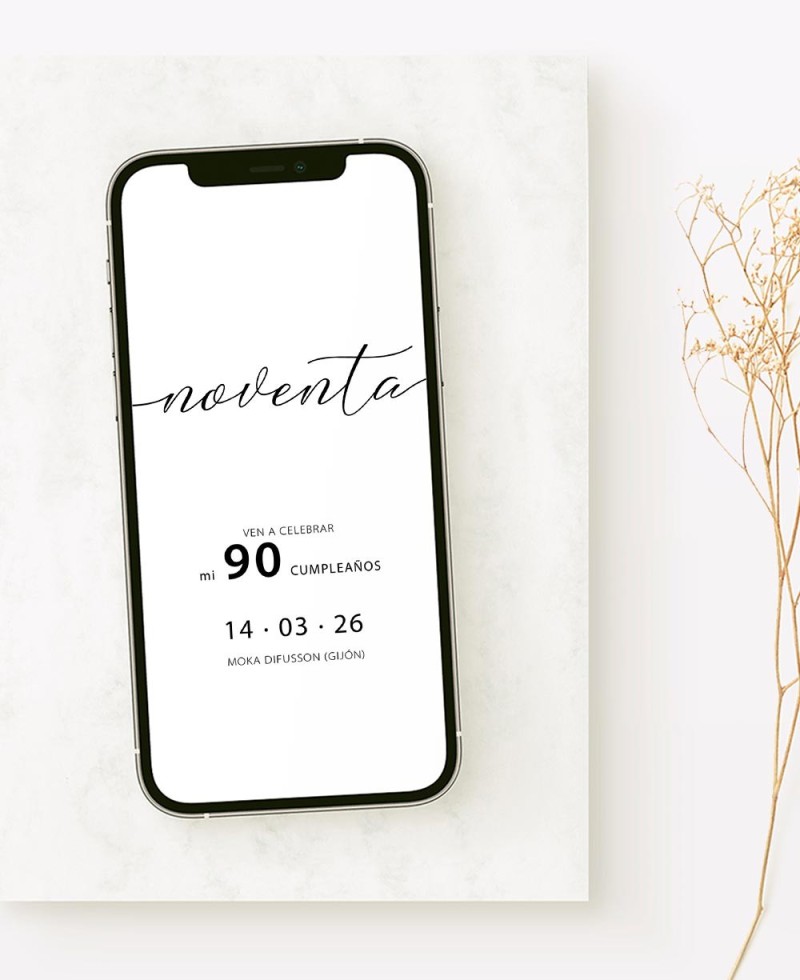Invitación digital de cumpleaños personalizada. Vídeo animado ideal para enviar a tus contactos. Decorada con tipografías tradicionales que aportarán calma y elegancia. La forma perfecta de sustituir o complementar tus invitaciones de cumpleaños de temática clásica.