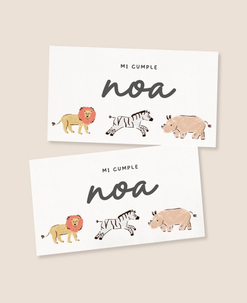 Pegatina para cumpleaños rectangular en sentido horizontal. Decorada con unas bonitas ilustraciones de animales salvajes y unos tonos cromáticos tiernos y cálidos. Haz que el día más esperado del año tenga la mejor decoración, ¡sorprenderás!