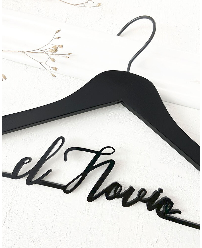 Incluye: Percha personalizada de boda con el nombre "el Novio" en acrílico negro