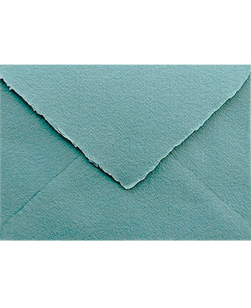 Si buscas un sobre artesanal de color azul empolvado 100% algodón con los bordes rasgados, no lo dudes, estos sobres artesanos te enamorarán. Realizados a mano con su característico acabado en barbas y su color azul claro con notas de color turquesa, hace que sea uno de los sobres más frescos y puros. Una tonalidad que transmite suavidad y elegancia.