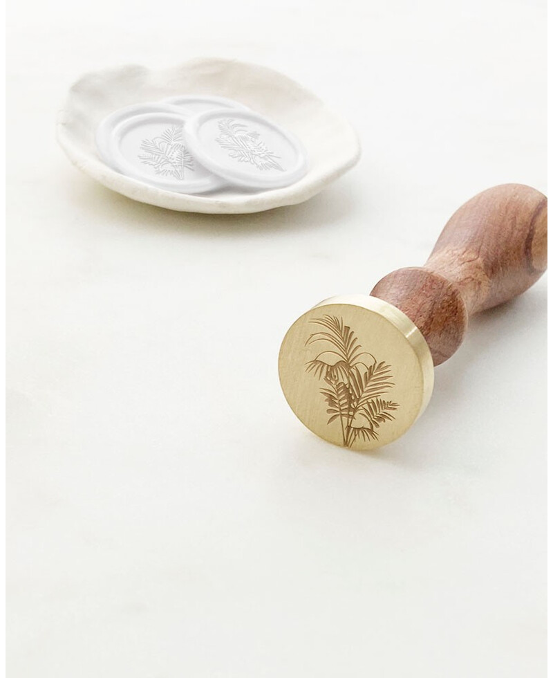 FlowersSealing seal with the design of a kentia. A delicate and romantic wax seal that will add an elegant touch to wedding invitations, envelopes, stationery and other accessories or decoration.