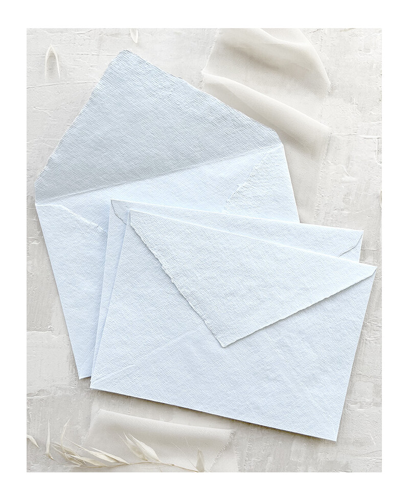 La nostra gamma più esclusiva di buste fatte a mano, buste artigianali azzurre realizzate con carte di altissima qualità (senza l'utilizzo di alberi) e peso (210 grammi!) realizzate artigianalmente senza acidi e tinte naturalmente. Il risultato sono buste uniche fatte a mano con un tocco deciso, strutturate, leggere ed eleganti con bordi strappati e barbe definite, molto eleganti.
