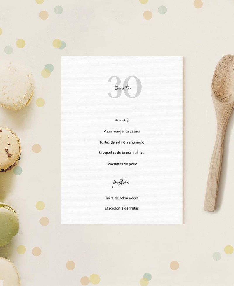VerbaleMenù di compleanno personalizzato. Minuti per le feste di compleanno. Design in stile classico e minimalista per adulti. Ideale per feste a tema minimal.