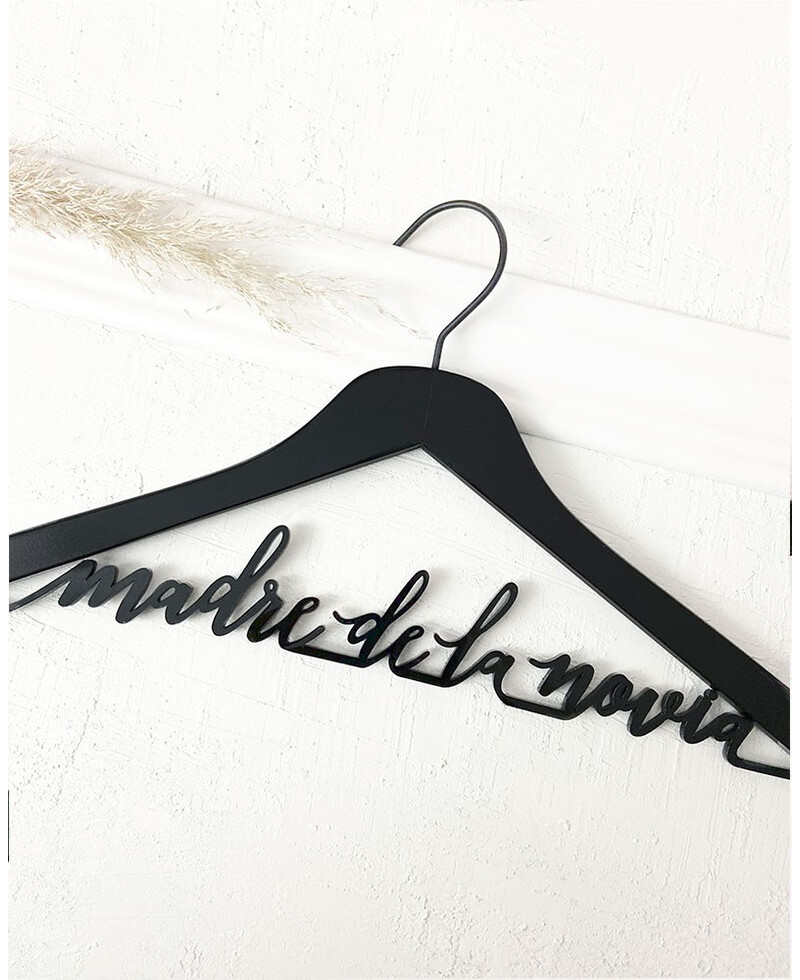Inclui: Cabide de casamento personalizado com o nome "mãe da noiva" em acrílico preto