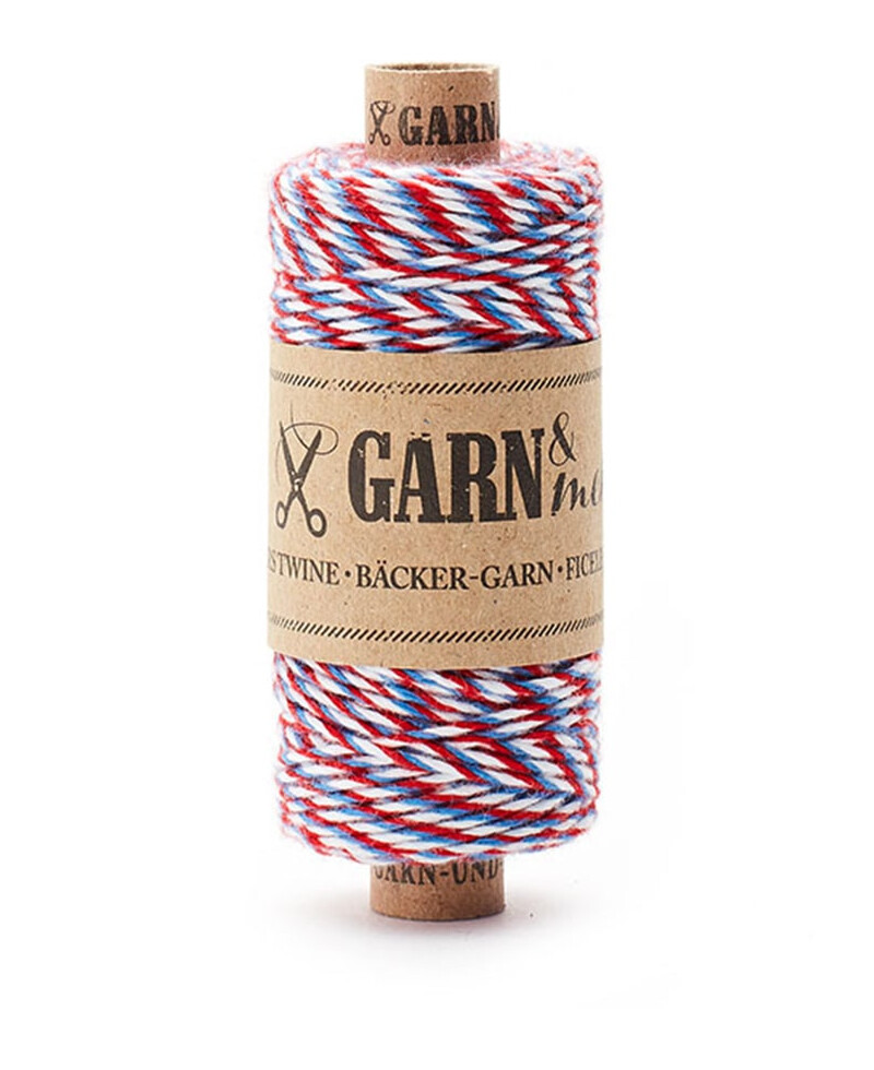 Se procura uma corda Airmail que melhor simbolize o tema da viagem, estilo vintage retro, misturando tons de azul, vermelho e branco da mais alta qualidade feitos com 100% algodão, este modelo de corda Air mail Baker Twine da prestigiada marca Garn und Mehr é um fio original e sofisticado.